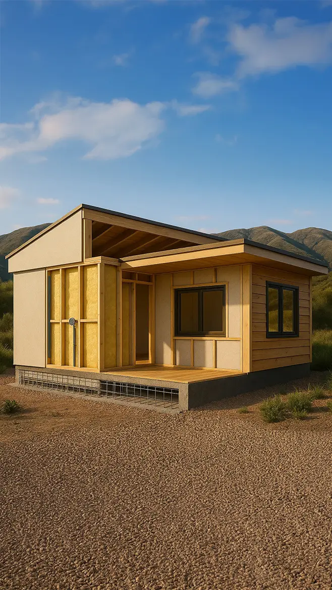 Usamos materiales certificados, aislantes térmicos de calidad y un sistema Woodframe con protección ignífuga, que asegura durabilidad y confort.
